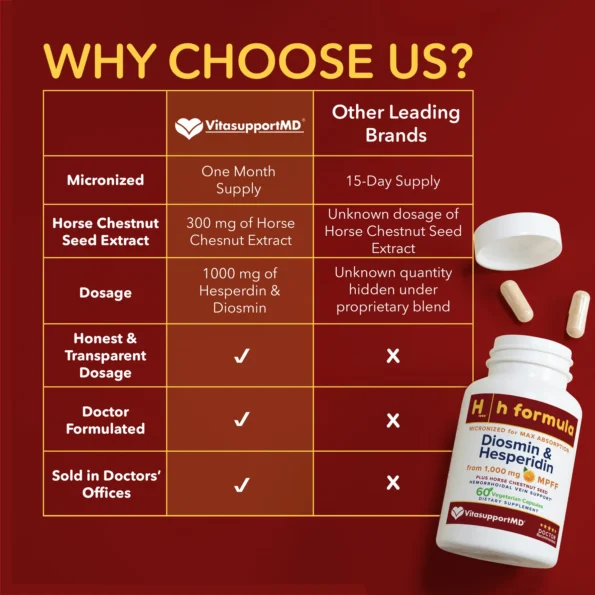 H Formula is 1000 mg of Diosmin and Hesperidin and 300 mg of Horse Chestnut Seed Extract per 2 capsule serving. Decades of research show that these amazing bioflavonoids, found in citrus rind, support healthy vein function and circulation.*