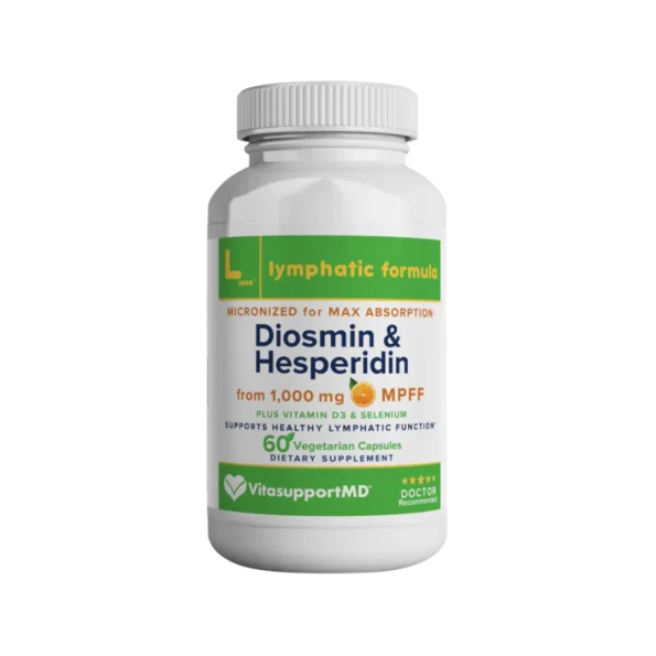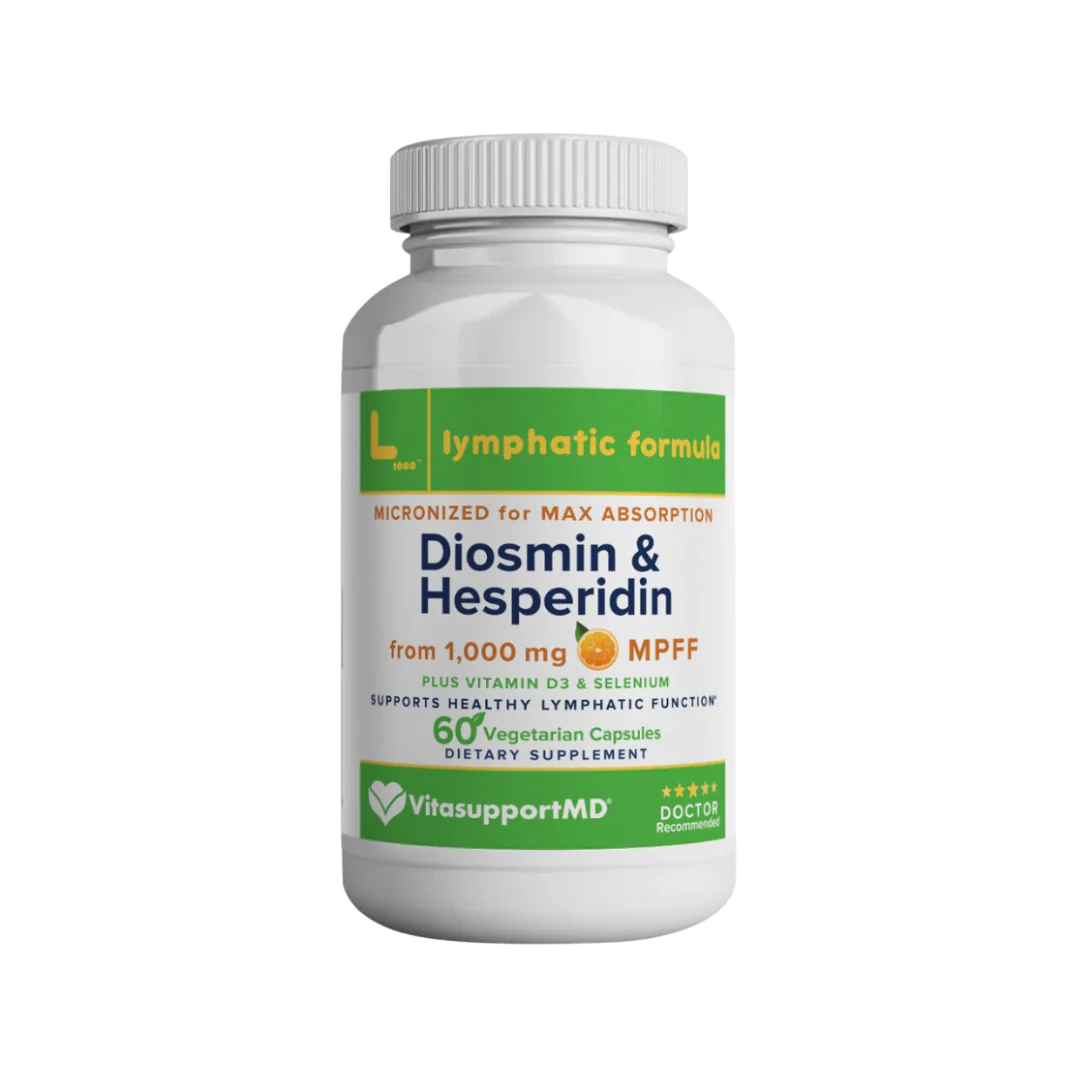 Lymphatic Formula is 1000 mg of Diosmin and Hesperidin, 2000 IU of Vitamin D3, and 200 mcg of Selenium per 2-capsule serving.