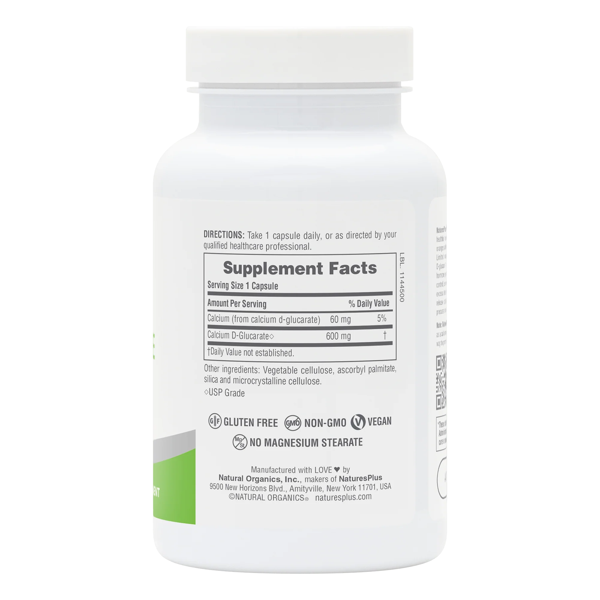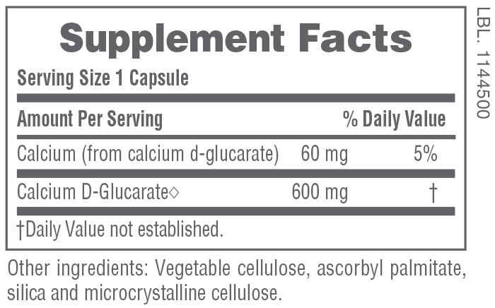 - Active Amount: 600 mg of calcium D-glucarate per serving