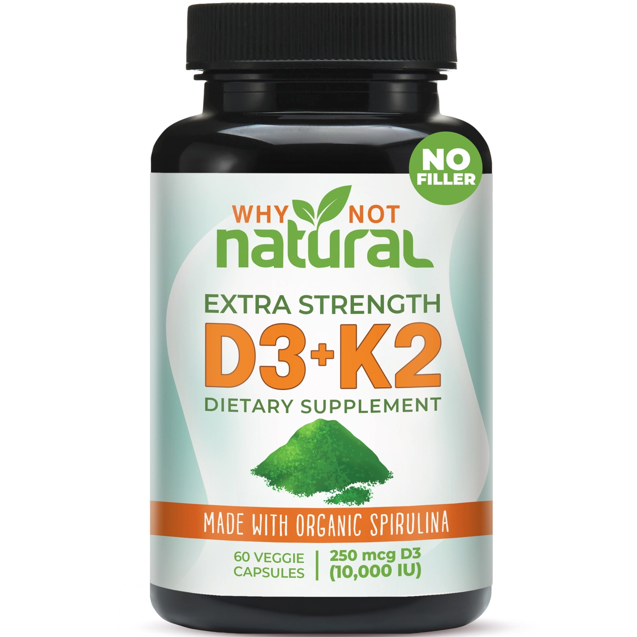 - High-potency D3-K2 with organic spirulina